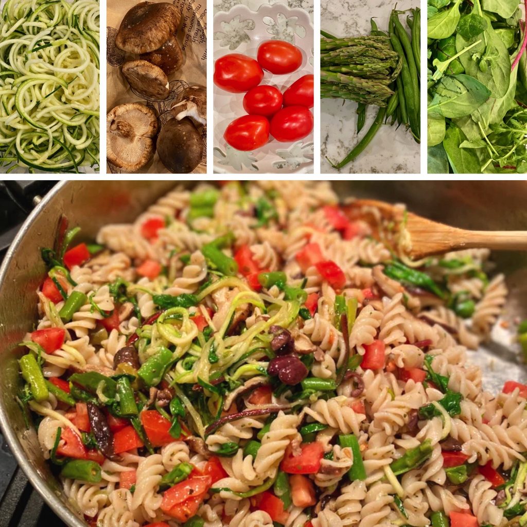 Okay, continuing with my series of nutritious and comforting foods…this is one of my favorite meals because you can literally use whatever you have on hand in your fridge. Whatever you normally like to eat (or can tolerate), it will taste great in this warm pasta dish.